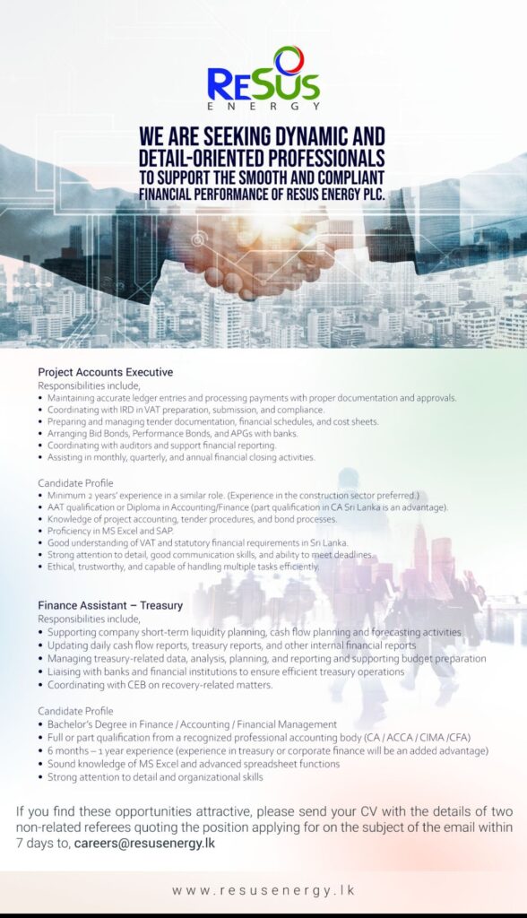 Apply now :- careers@resusenergy.lk