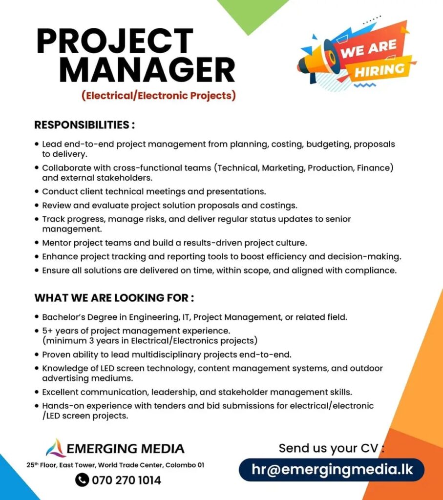 📩 Send your CV to jobs@emergingmedia.lk