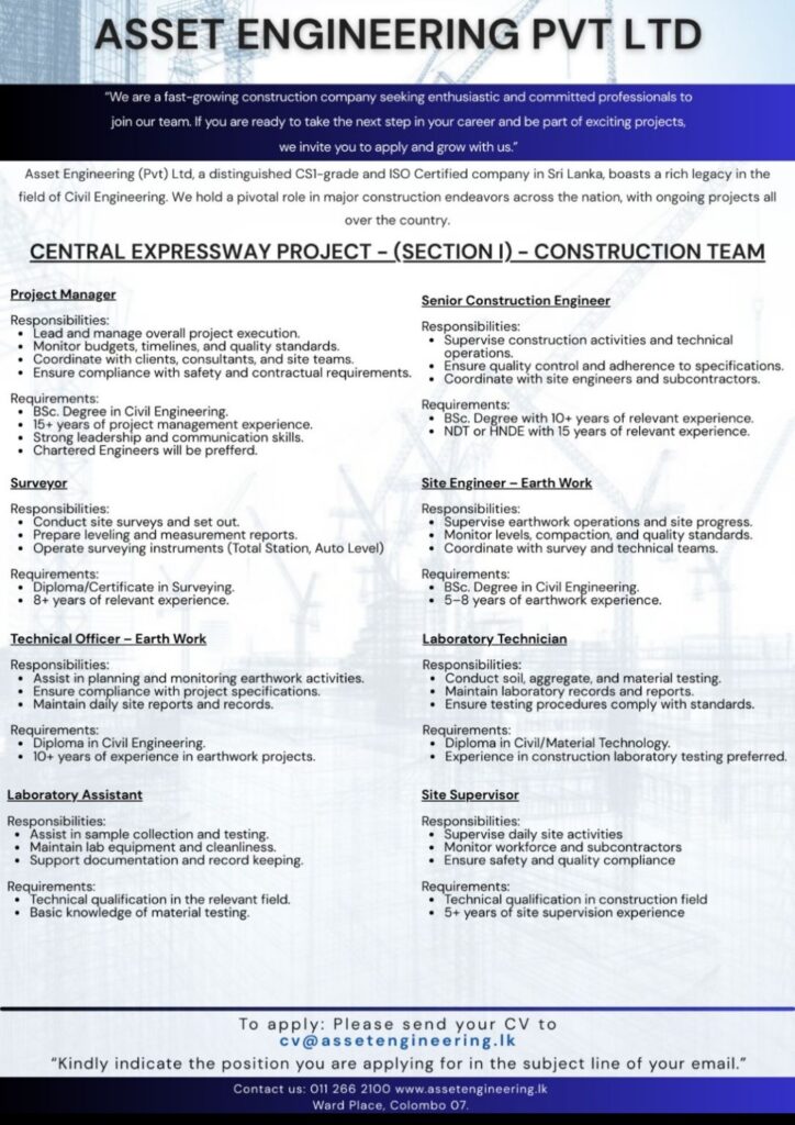 Project Manager/ TO/ QS/ Site Engineer/ Construction Engineer/ Lab Assistant / Surveyor/ Supervisor