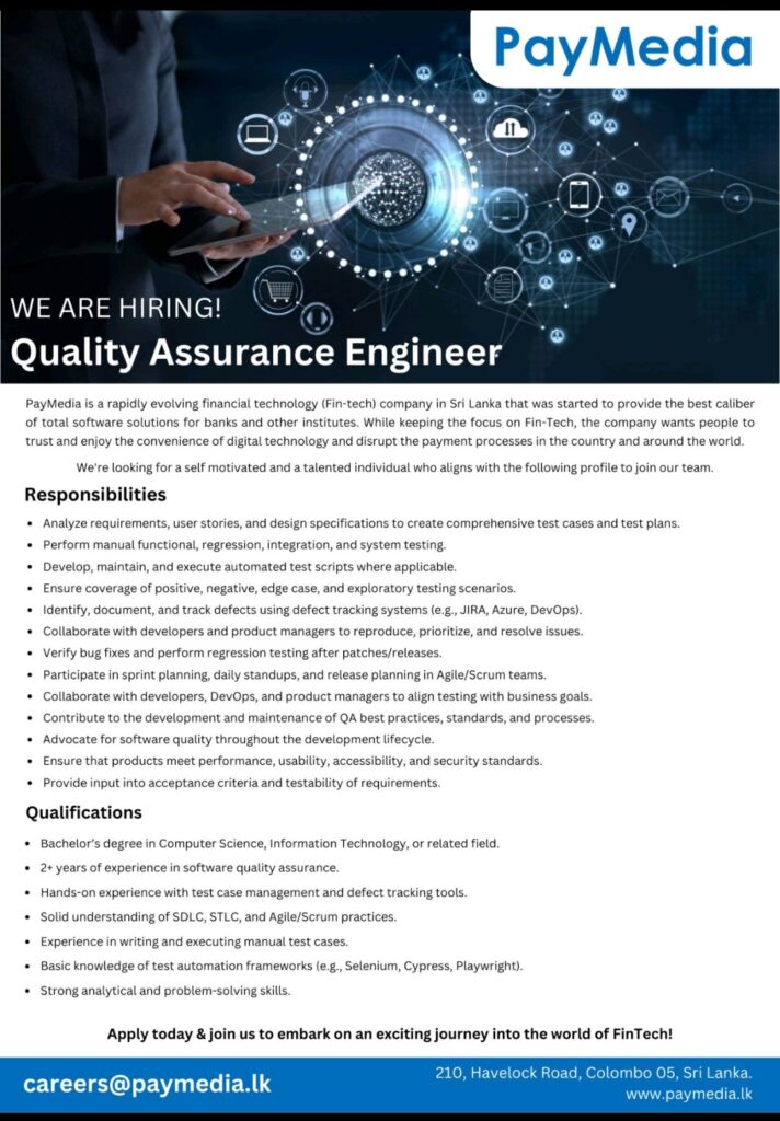 Send your CV to: careers@paymedia.lk