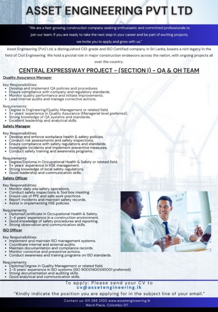 Apply Now:- cv@assetengineering.lk