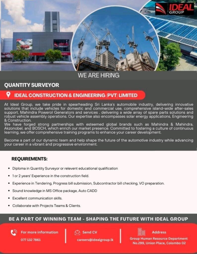 Apply Now:- careers@idealgroup.lk