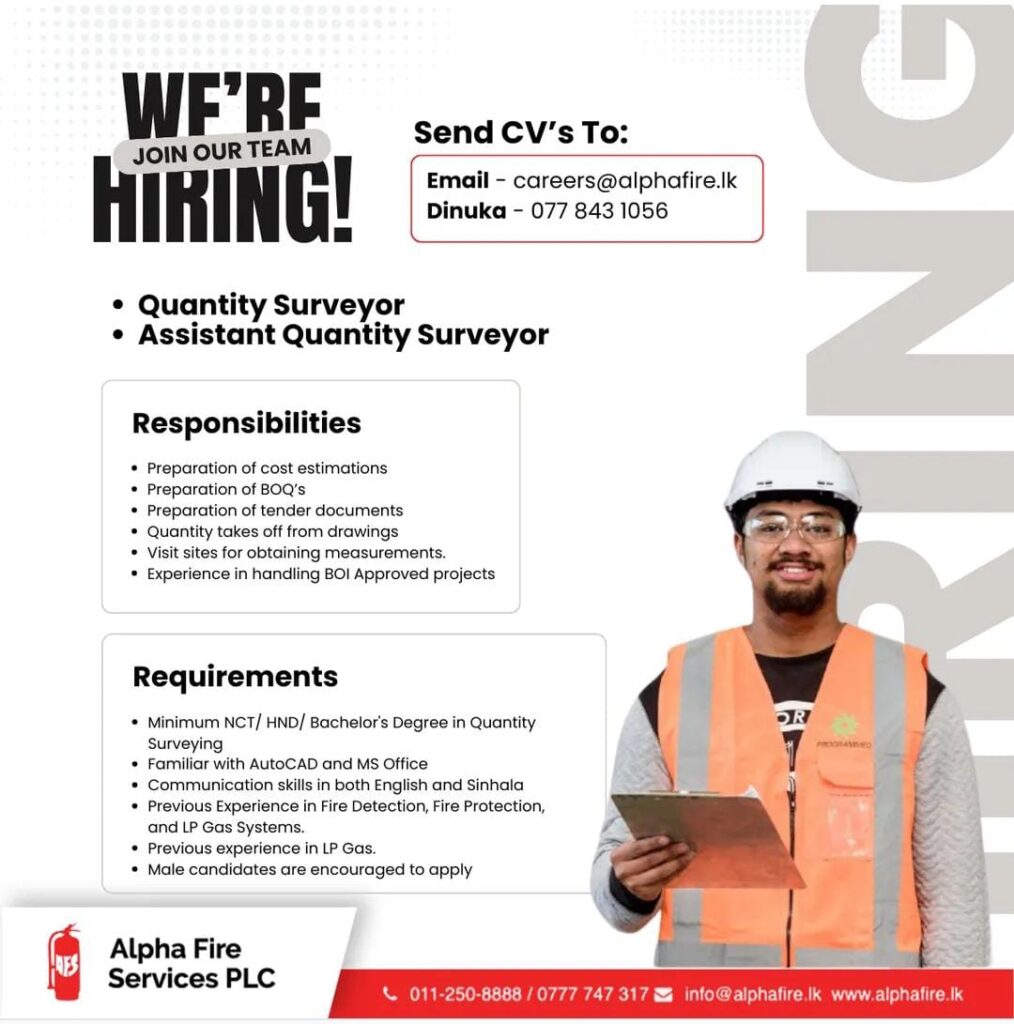 Join a leading fire solutions provider as a Quantity Surveyor or Assistant QS.
