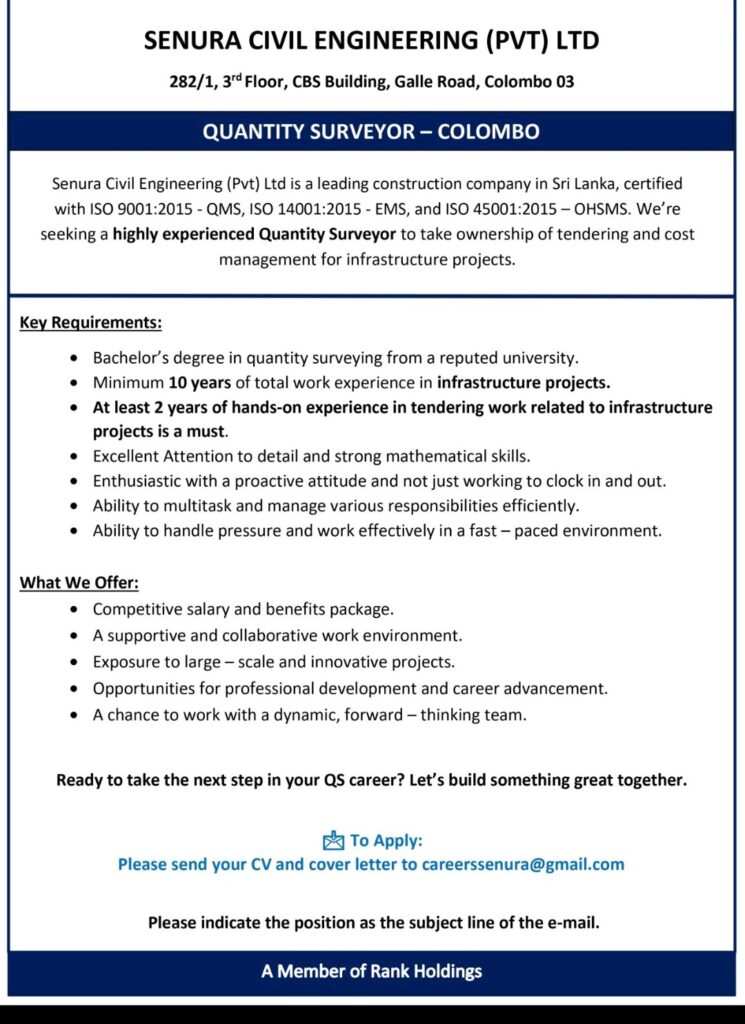 Are you a skilled Quantity Surveyor with over 10 years of experience and a strong background in tendering? We want to hear from you!