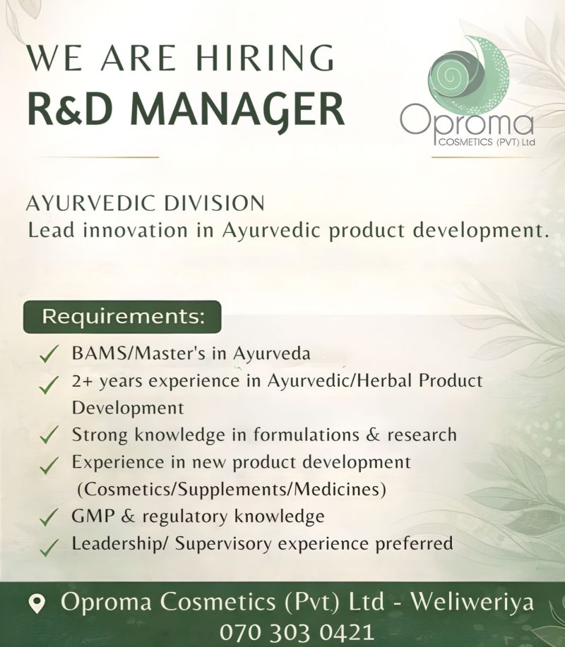 πΏ Join our growing Ayurvedic division and be part of innovative herbal product development.