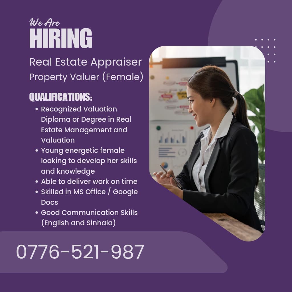 ✨ Position:- Real Estate Appraiser / Property Valuer (female)