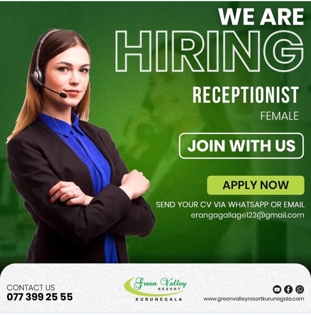 Green Valley Resort – Kurunegala is looking for a Female Receptionist to join our team!