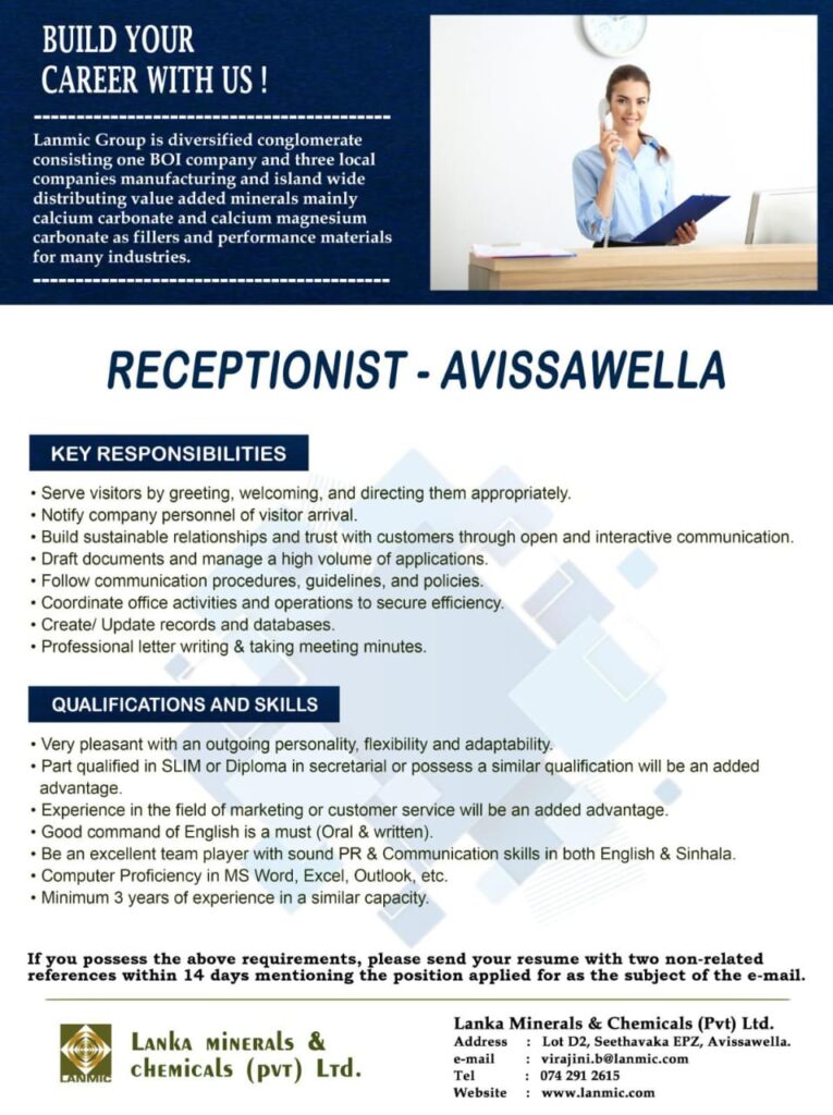 Company:- Lanmic Group – Lanka Minerals and chemical Pvt ltd
