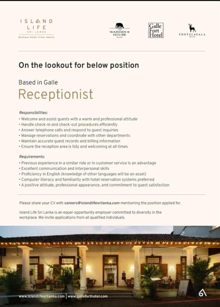 Sri Lanka receptionist Job Vacancy
