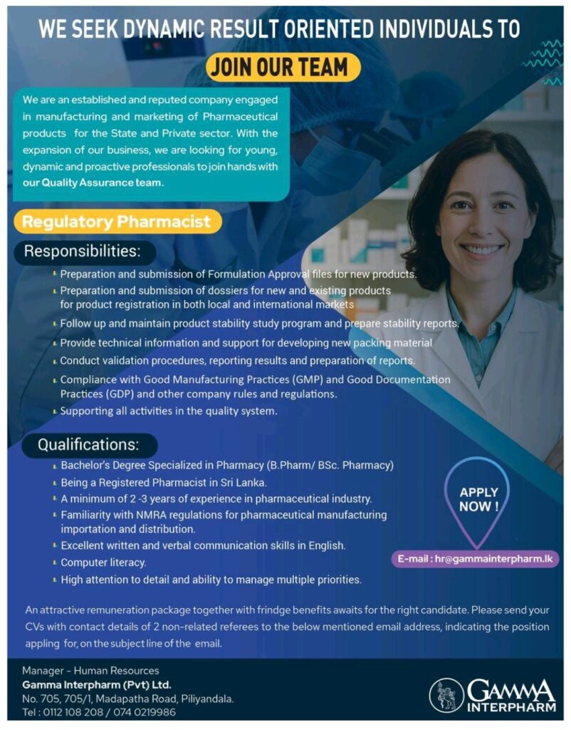 Join Gamma Interpharm as a Regulatory Pharmacist and be part of our growing team of professionals dedicated to ensuring quality and compliance in pharmaceutical manufacturing.