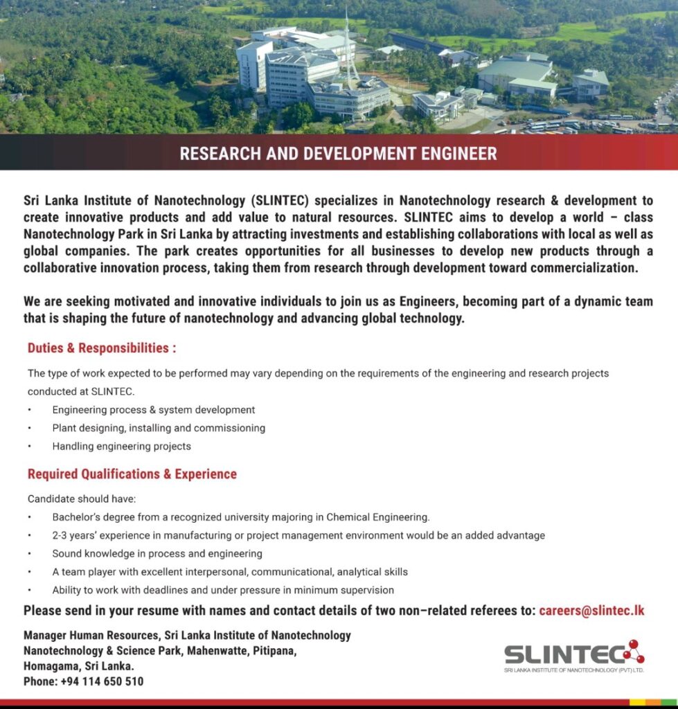 Join our dynamic team at SLINTEC as a Research and Development Engineer!