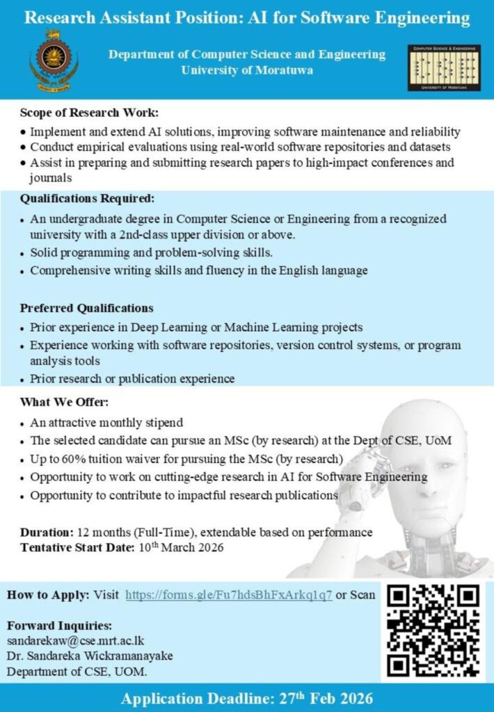 currently recruiting a full-time Research Assistant for a research project in Artificial Intelligence for Software Engineering at the Department of Computer Science & Engineering.