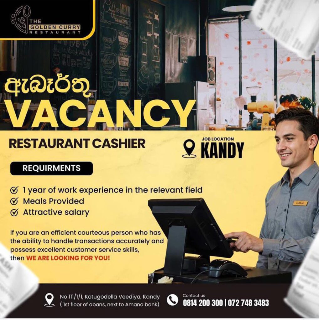 Sri Lanka cashier job vacancy