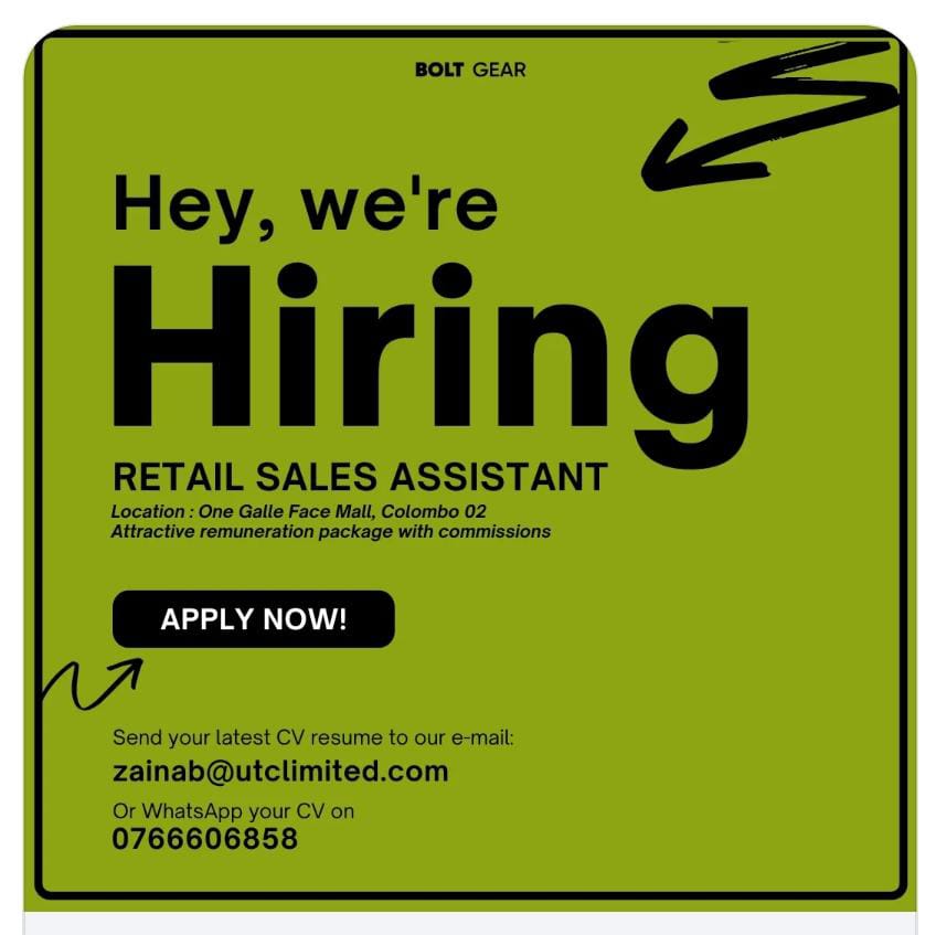 Join our dynamic team at One Galle Face Mall, Colombo 02!