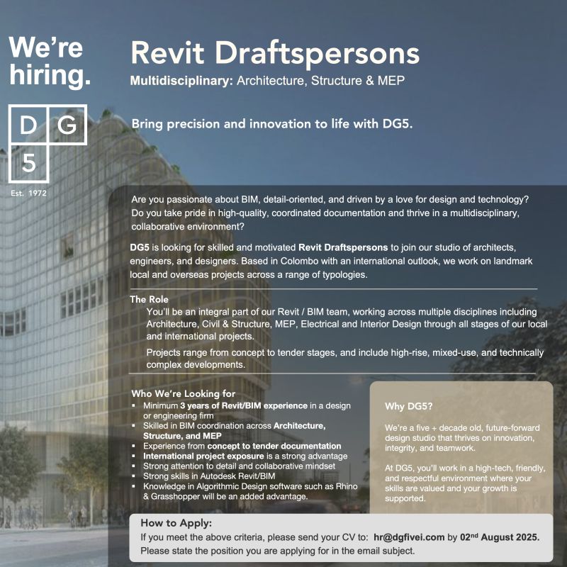 DG5 is looking for skilled and motivated Revit Draftspersons to join our studio of architects, engineers, and designers.