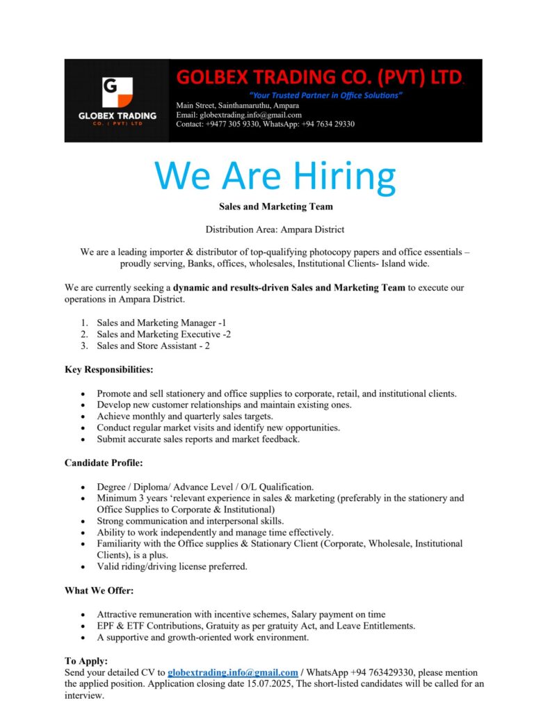 Sales and Marketing Manager/ Executive/ Sales and Store Assistant