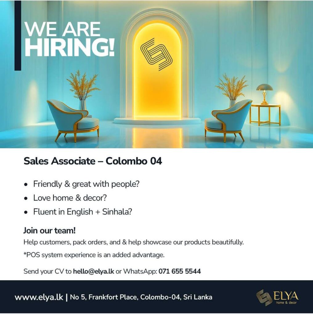 We’re hiring! Looking for someone friendly, fluent in English + Sinhala, and passionate about home & decor.