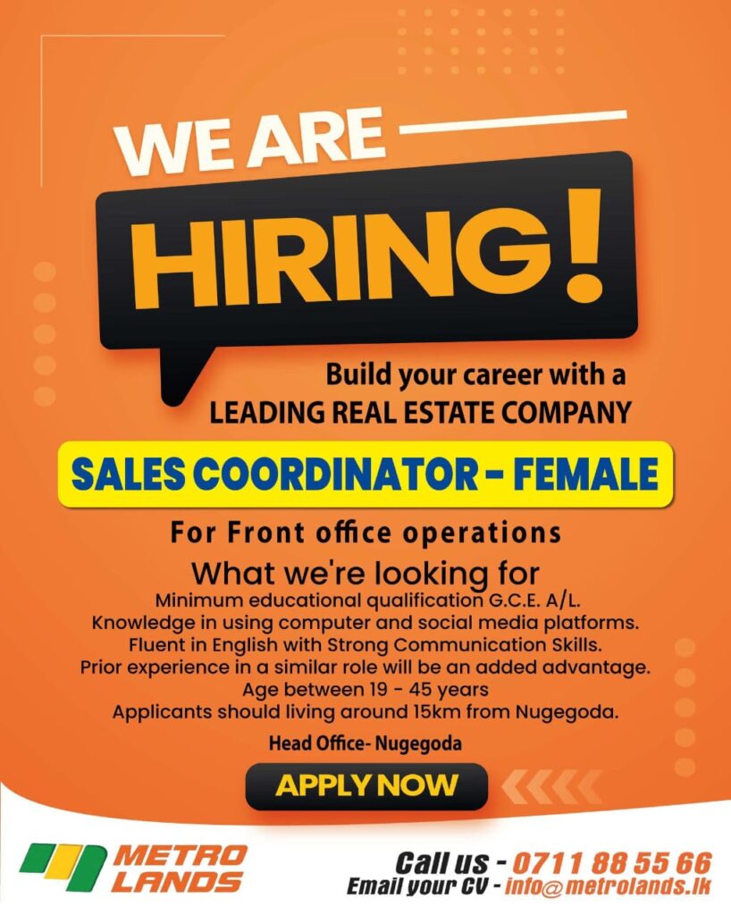 📧Send Your CV: info@metrolands.lk