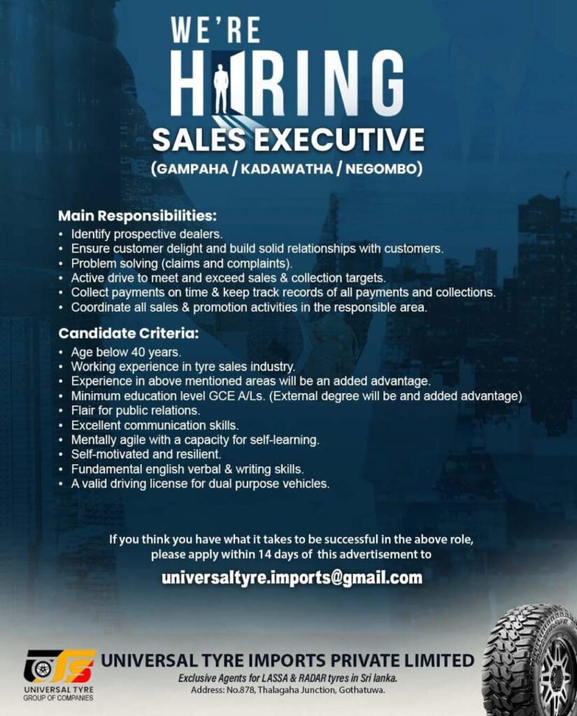 Send your CV:- universaltyre.imports@gmail.com