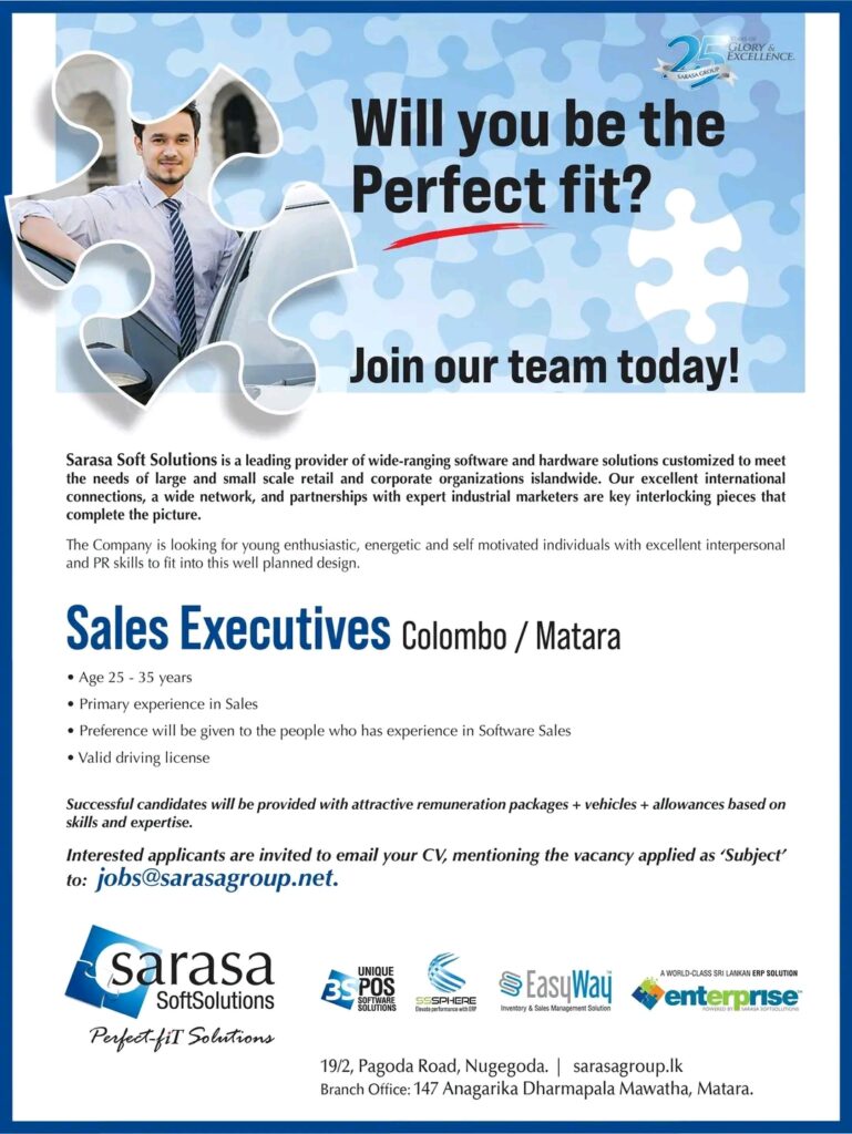 Sarasa Soft Solutions – Sri Lanka’s #01 Provider of Trusted, Luxurious POS & ERP Software and Hardware Solutions.” – is looking for Dynamic, Energetic, and Passionate Sales Executives to join our Growing Team in Colombo & Matara.