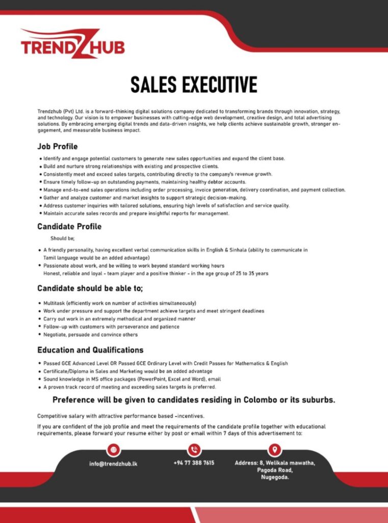 Apply now :- info@trendzhub.lk