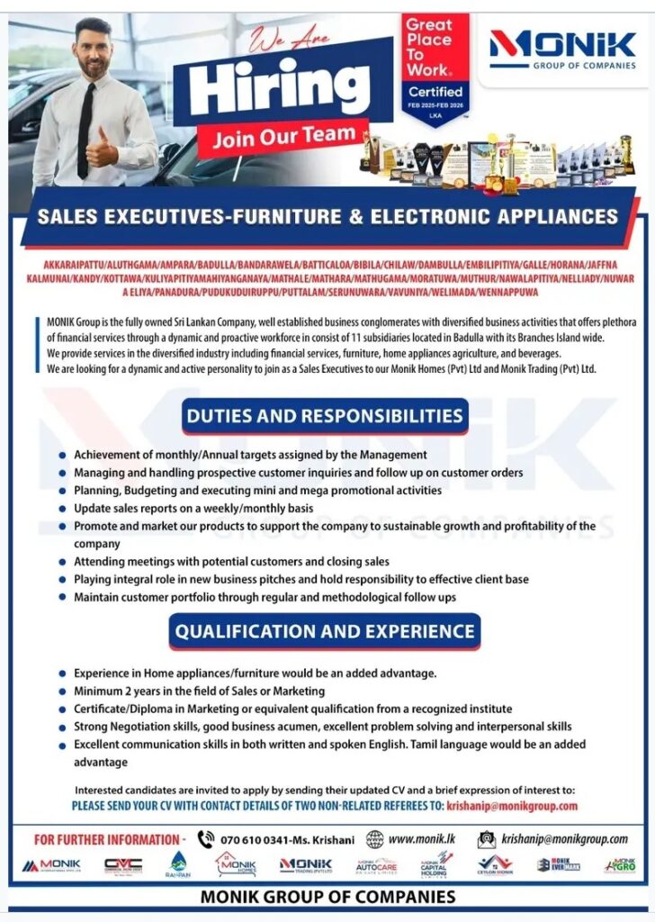 Sales Executive – Furniture & Electronic Appliances
