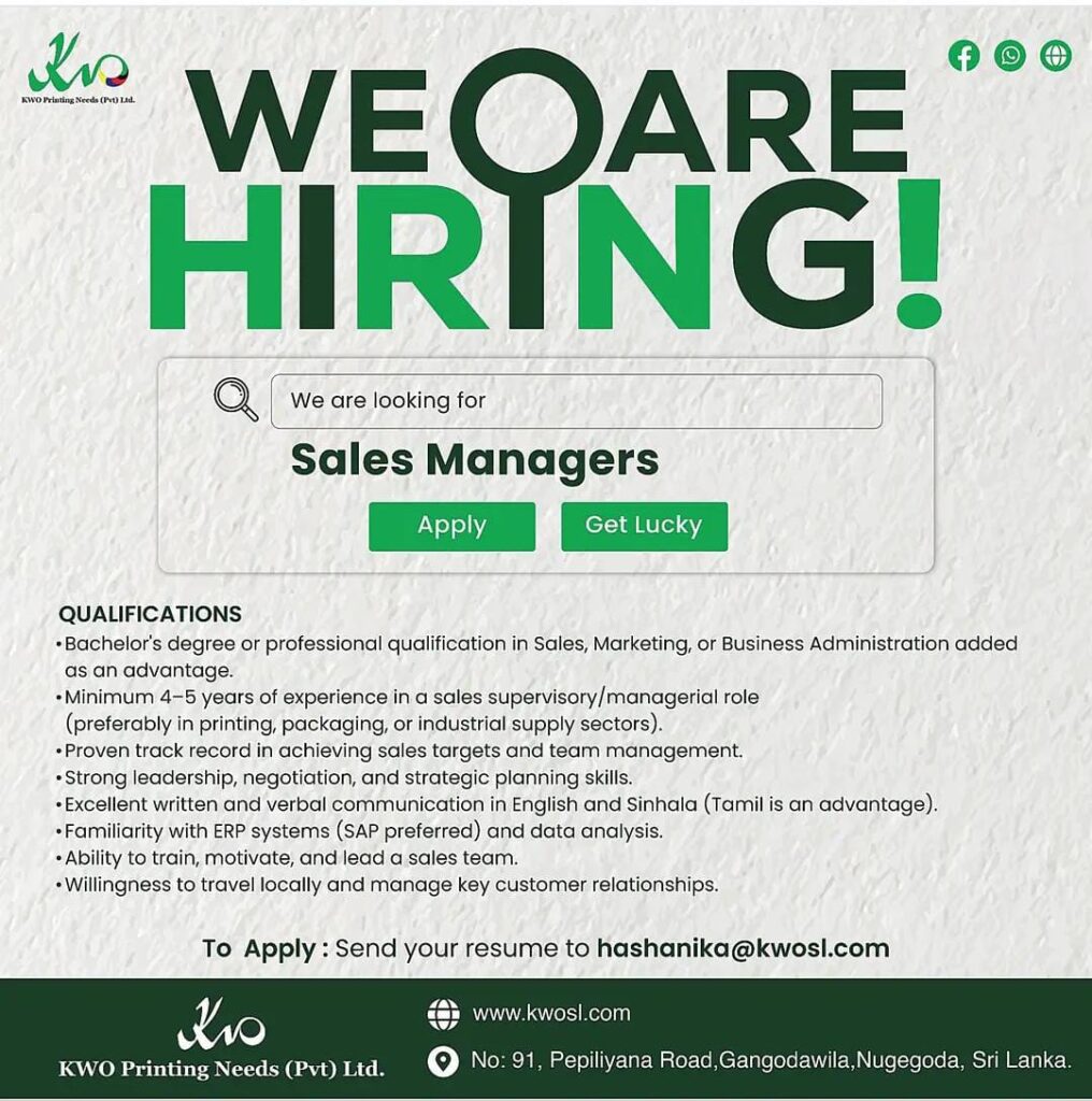 🚨 WE’RE HIRING – SALES MANAGER 🚨