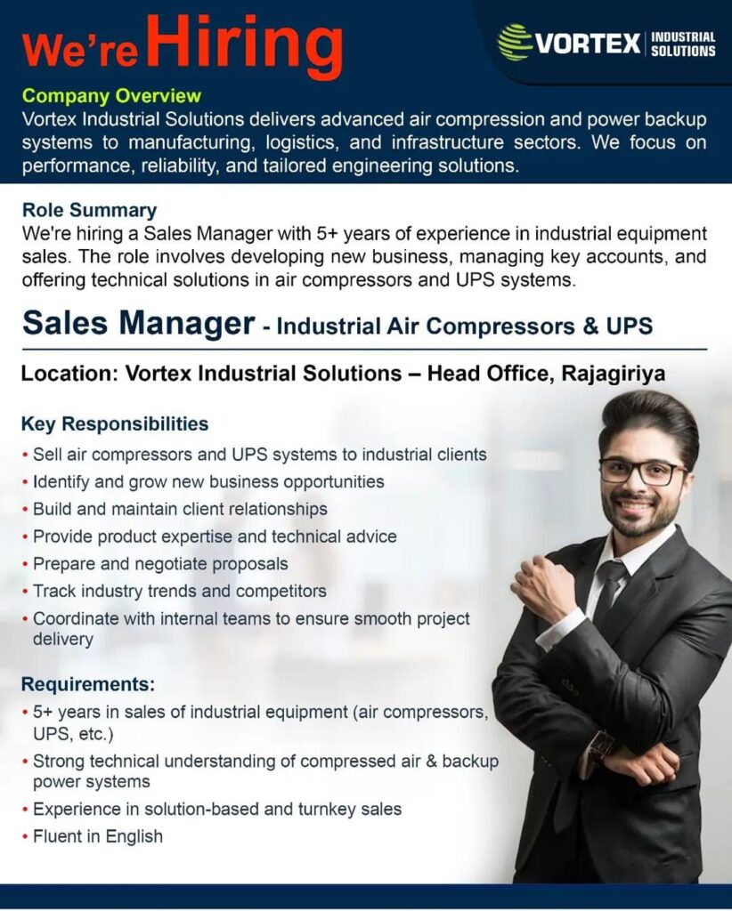 🚨 We’re Hiring: Sales Manager – Air Compressors & UPS 🚨