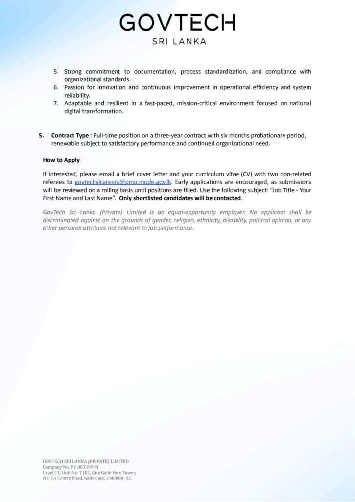 Email your CV to govtechslcareers@pmu.mode.gov.lk