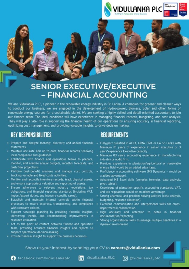 We’re Hiring – Senior Executive / Executive -Financial Accounting