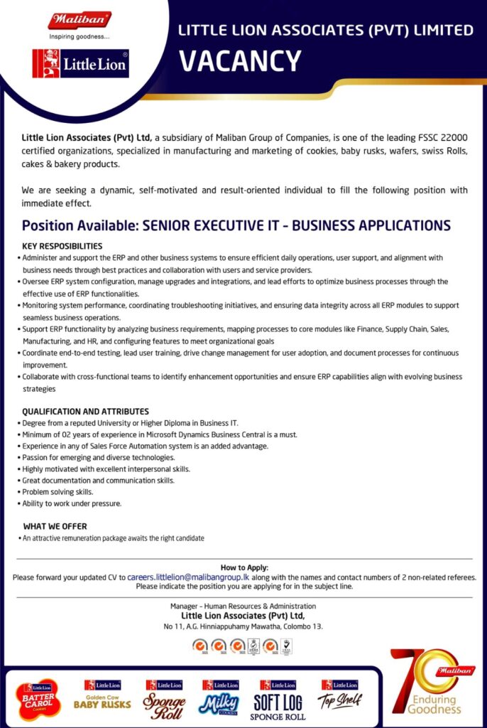 Apply Now :- careers.littlelion@malibangroup.lk