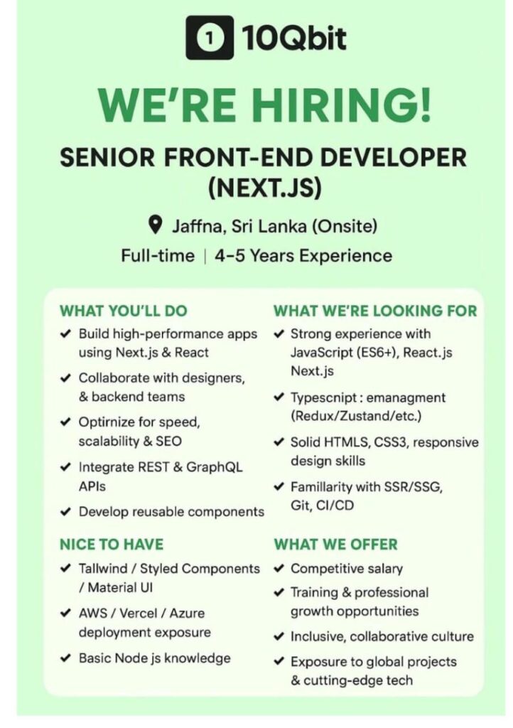 with the subject line: “Application – Senior Front-End Developer (Next.js)”