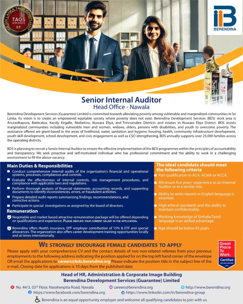 Sri Lanka finance and accounts job vacancy