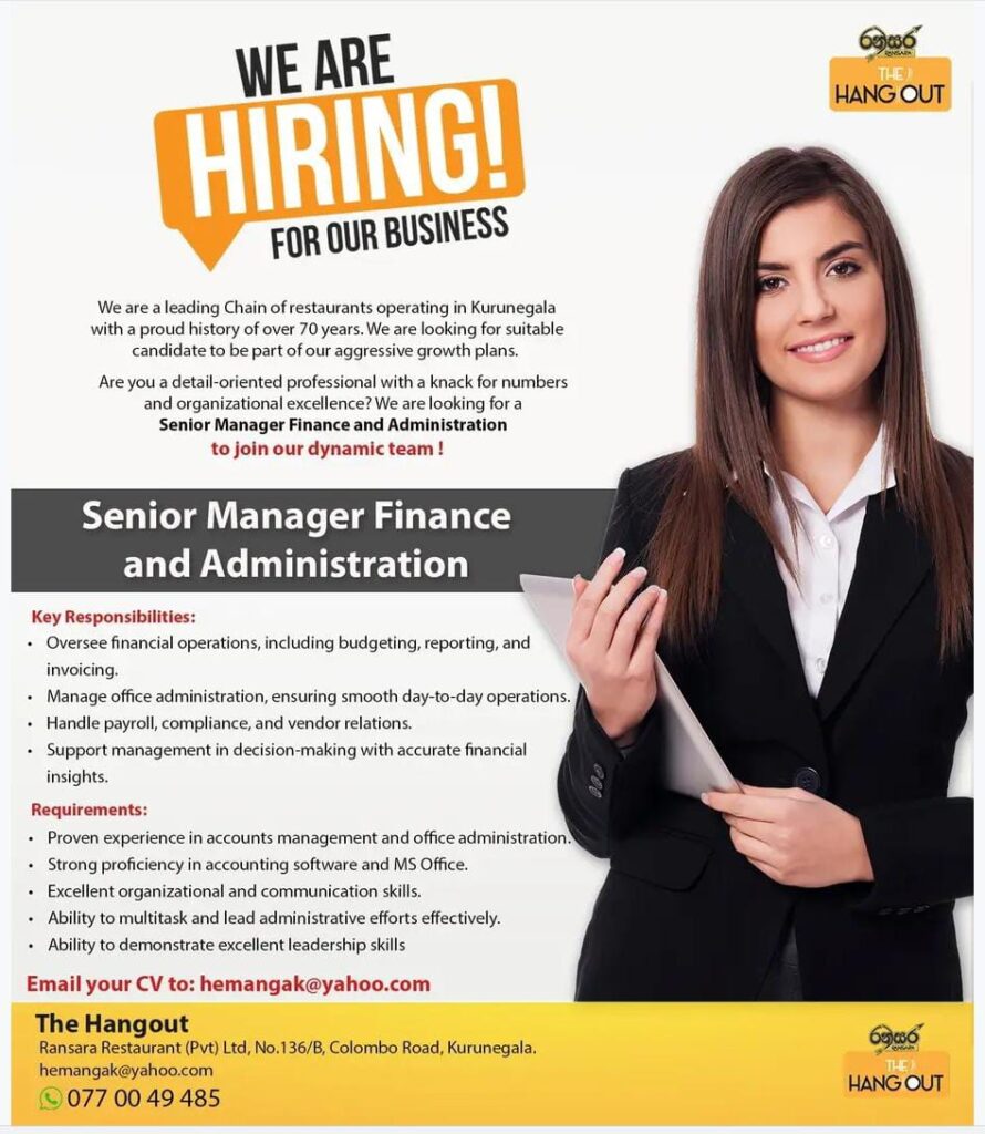 Are you a detail-oriented professional with a knack for numbers and organizational excellence? We are looking for a 𝐒𝐞𝐧𝐢𝐨𝐫 𝐌𝐚𝐧𝐚𝐠𝐞𝐫 𝐅𝐢𝐧𝐚𝐧𝐜𝐞 𝐚𝐧𝐝 𝐀𝐝𝐦𝐢𝐧𝐢𝐬𝐭𝐫𝐚𝐭𝐢𝐨𝐧 to join our dynamic team!