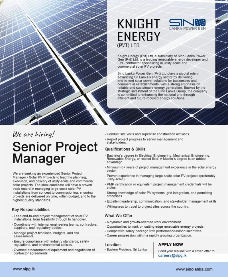 We are seeking an experienced Senior Project Manager – Solar PV Projects to lead the planning, execution, and delivery of utility-scale and commercial solar projects.