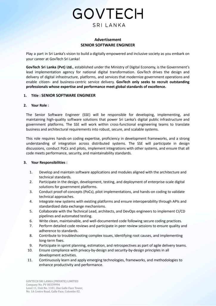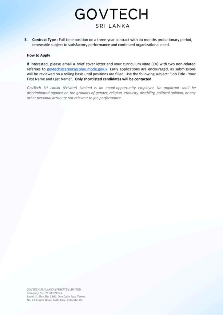Email your CV to govtechslcareers@pmu.mode.gov.lk