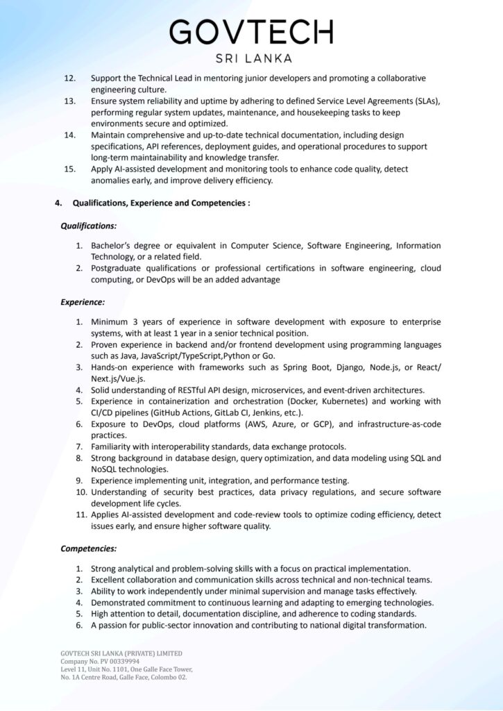 We’re looking for Senior Software Engineers to join our founding team and build the secure, scalable systems powering Sri Lanka’s next-generation digital government services.
