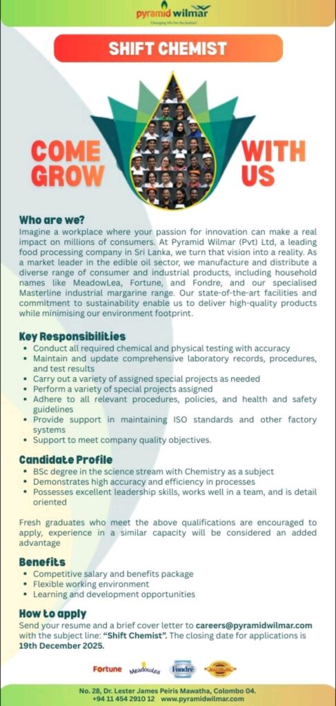 Drive Growth, Inspire Teams, Shape Success – We are Hiring a “Shift Chemist”