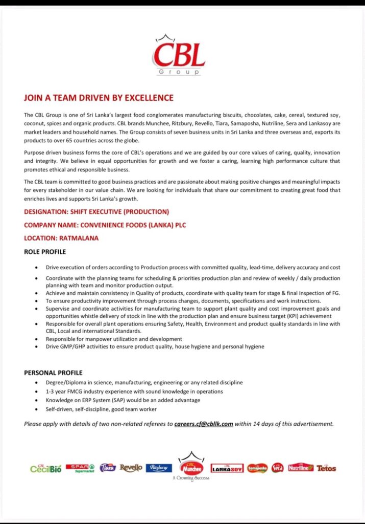 Apply now :- careers.cf@cbllk.com