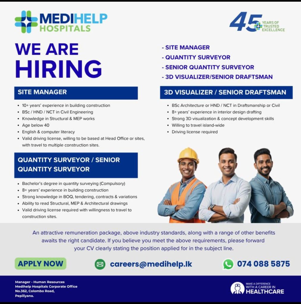 Join Medihelp Hospitals and be part of a team that’s shaping the future of healthcare and construction excellence.