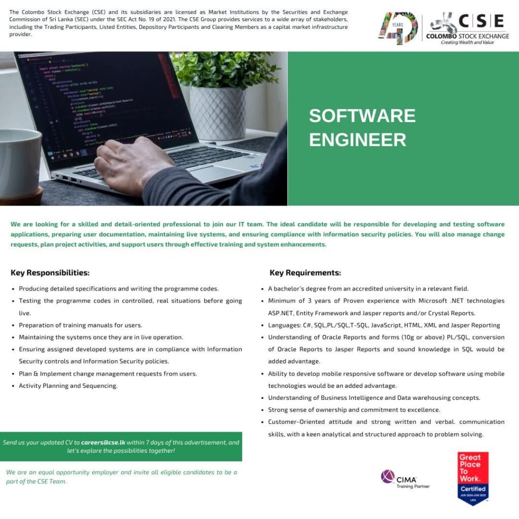 Interested candidates are encouraged to send their CVs to careers@cse.lk by 08th September 2025
