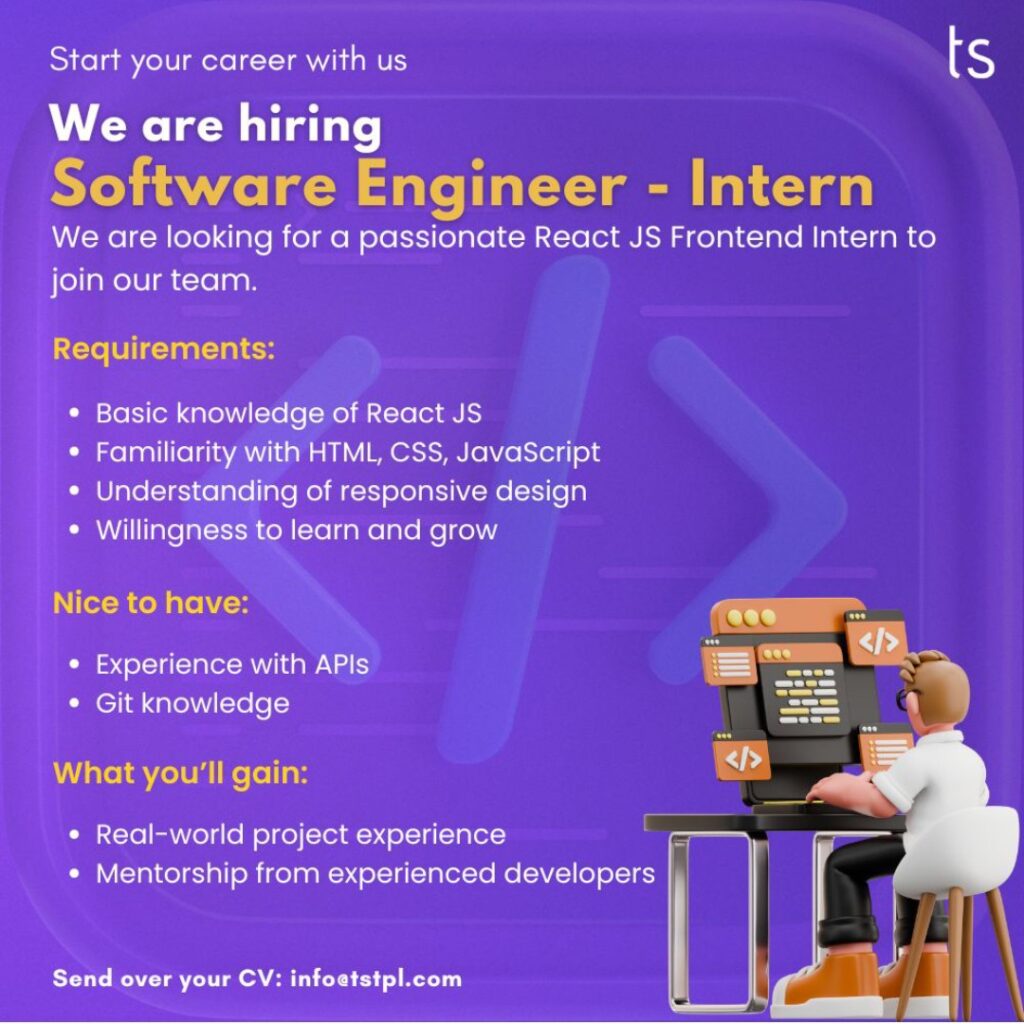 Send your CV to info@tstpl.com and grow with us!