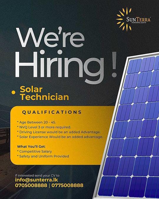 Ready to shine in a sustainable career? Send your CV to info@sunterra.lk or call us at 0705008888 | 0775008888 for more information!
