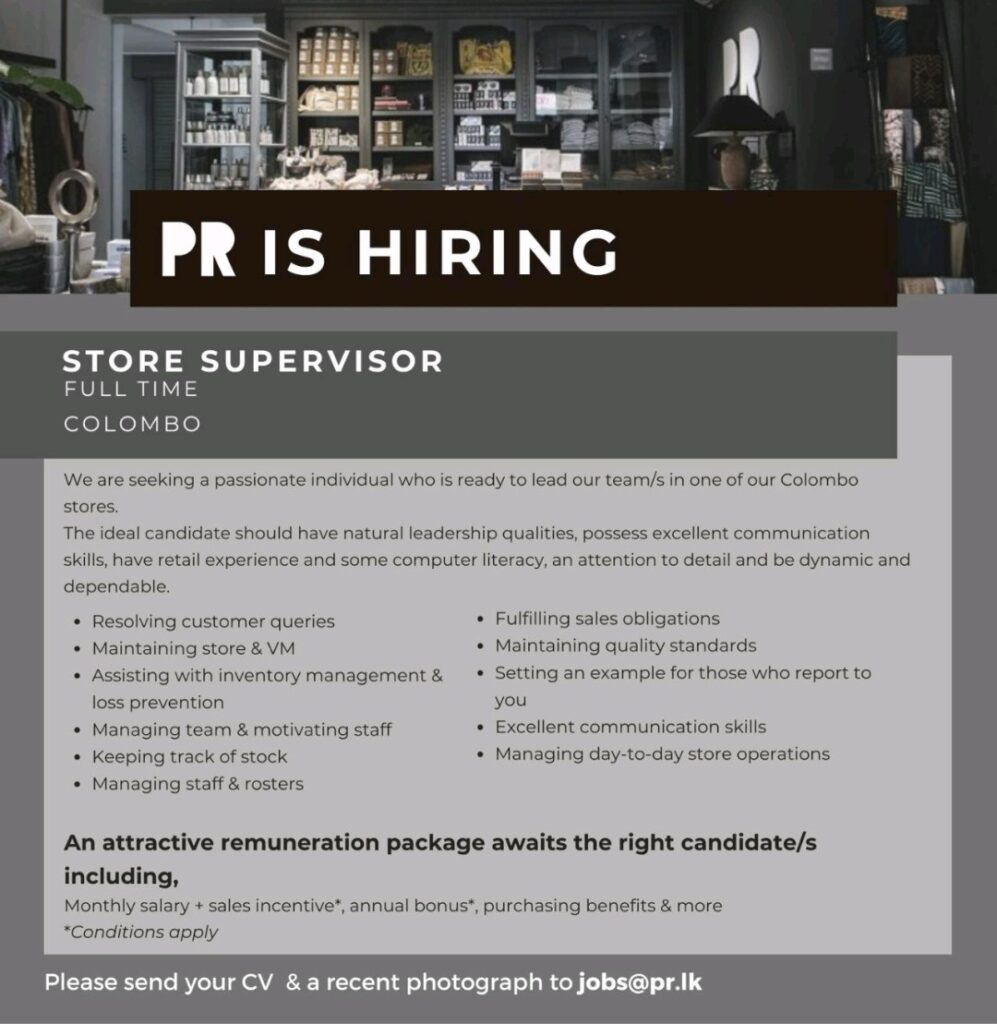 Hiring a Store Supervisor for the PR Design Concept Store.