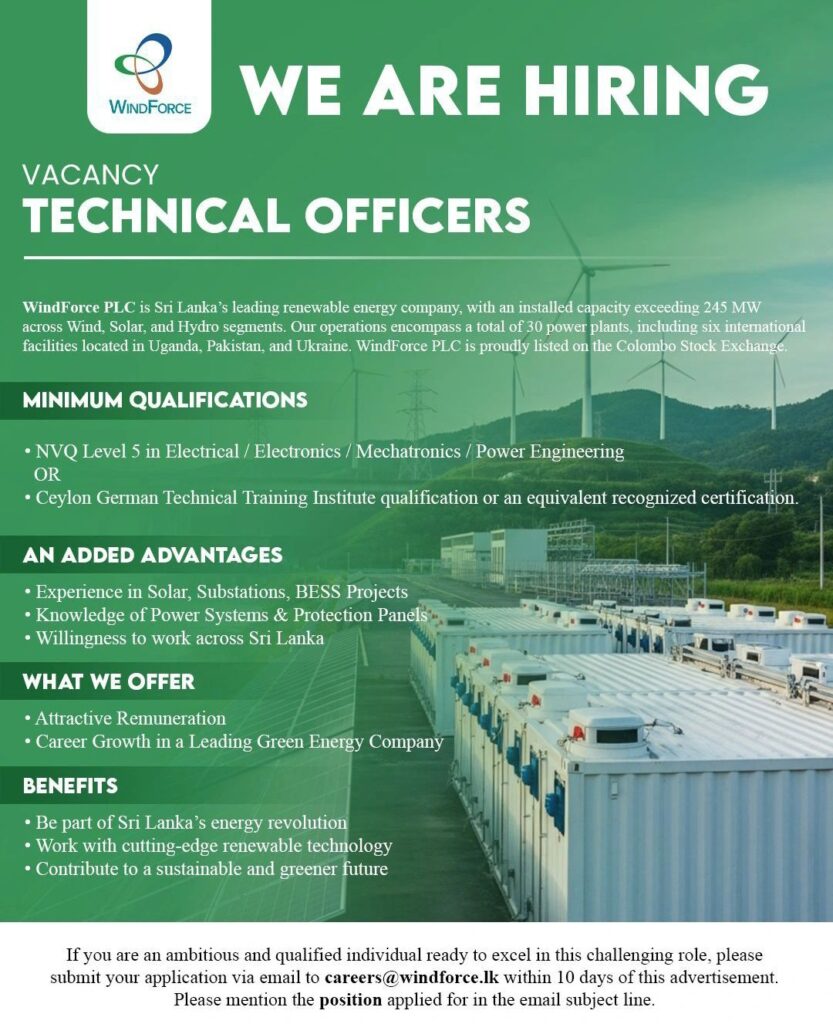 Apply Now :- careers@windforce.lk