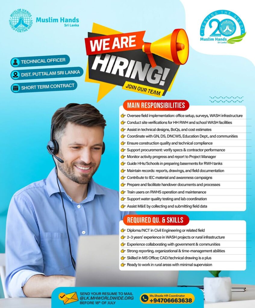 Join Muslim Hands Sri Lanka as a Technical Officer in Puttalam.