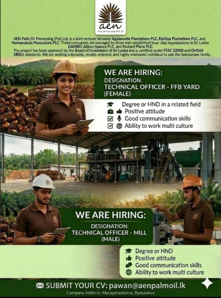 Apply Now: Send your CV to pawan@aenpalmoil.lk