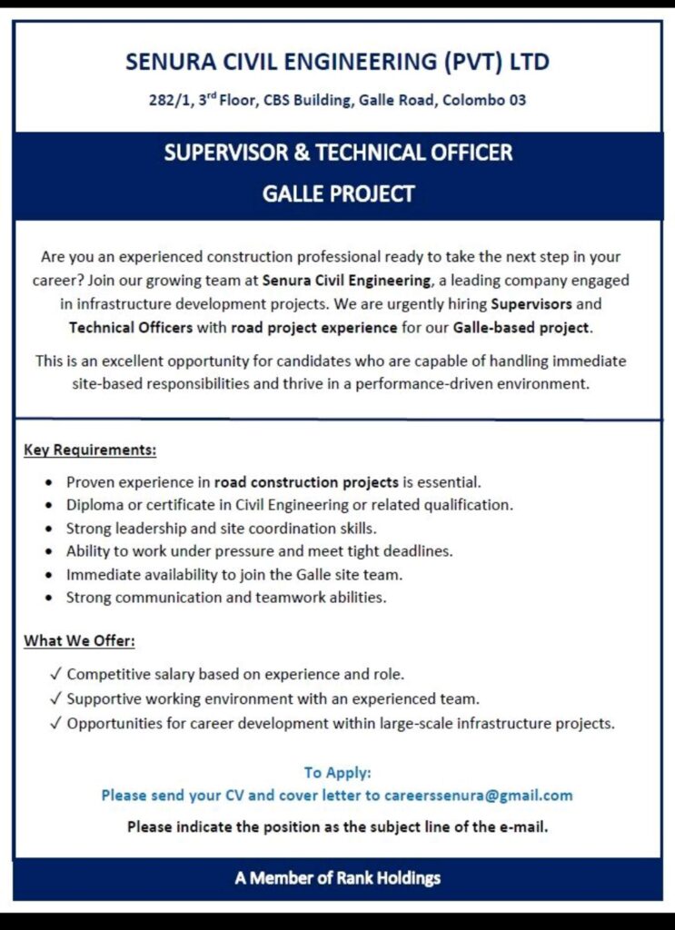 Are you an experienced Technical Officer or Supervisor with a background in road construction?