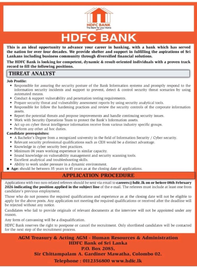 Apply Now :- careers@hdfc.lk
