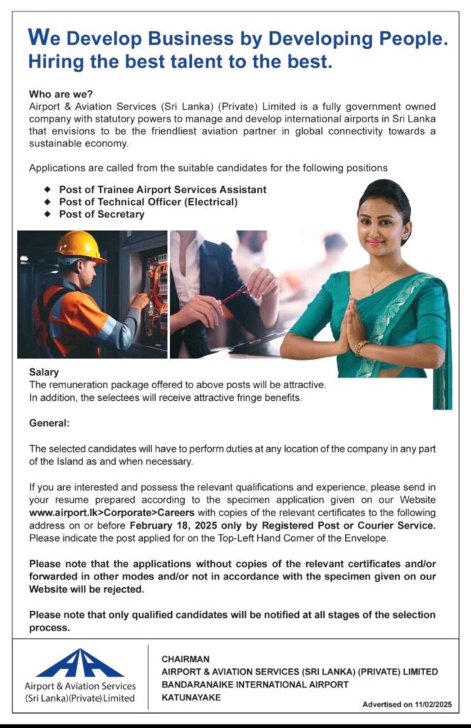 Trainee Airport Service Assistant/ Technical Officer(Electrical) / Secretary